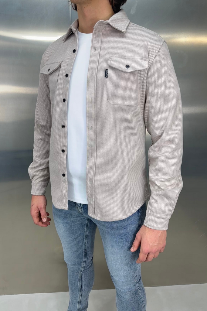 Aggiungi un tocco di eleganza senza sforzo con questa camicia-giacca in pied di pollo. La tonalità stone si abbina perfettamente a qualsiasi guardaroba, offrendoti versatilità dallo stile casual ai look più raffinati. Realizzata per garantire comfort e durabilità, questo capo si adatta magnificamente a ogni stagione. Indossala aperta su una maglietta o abbottonata per un aspetto più curato: è il pezzo essenziale che trasforma il tuo stile quotidiano.