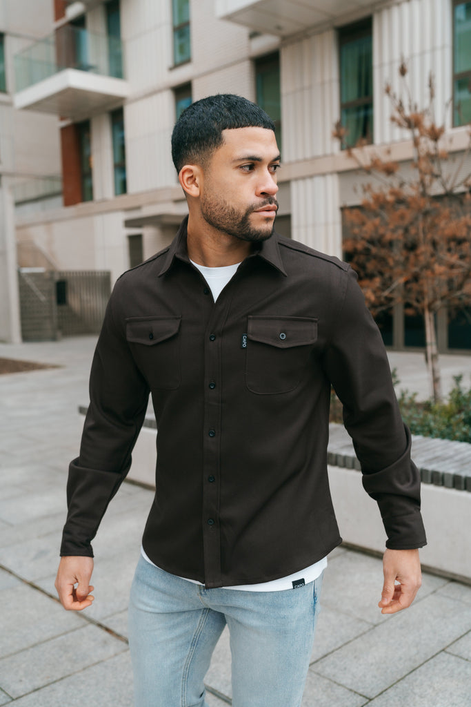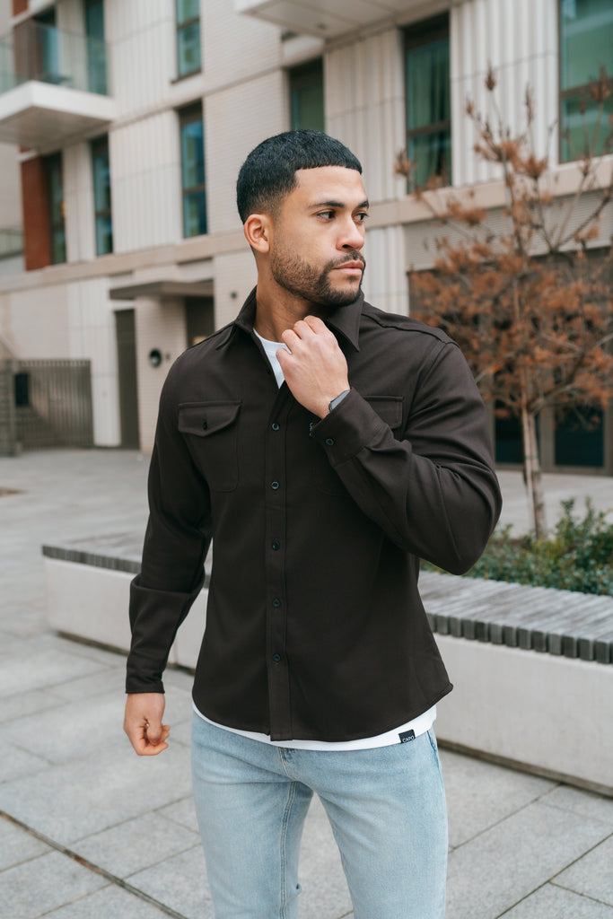Scopri la versatilità di questa overshirt marrone, il capo essenziale che trasforma ogni outfit. Perfetta per stratificare con stile, combina comfort e eleganza in un'unica soluzione. Indossala aperta su una maglietta per un look casual raffinato, oppure abbottonata come giacca leggera per occasioni più formali. Il marrone caldo si abbina facilmente a qualsiasi guardaroba, garantendo infinite possibilità di styling. Un investimento versatile che diventerà il tuo alleato preferito per la transizione tra le stagioni.