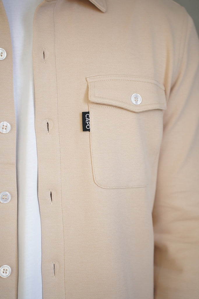 Scopri l'eleganza senza sforzo con la Pique Overshirt in Avena. Realizzata in pregiato tessuto piqué, questa camicia da indossare sopra altri capi offre una texture sofisticata e una vestibilità comoda per il tuo guardaroba quotidiano. Il colore avena neutro si abbina facilmente a qualsiasi outfit, mentre la costruzione di qualità garantisce durabilità nel tempo. Perfetta per chi ricerca uno stile versatile e raffinato, questa overshirt eleva qualsiasi look con un tocco di classe contemporanea.