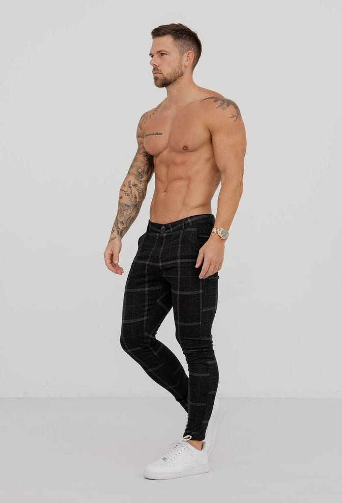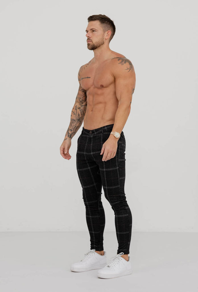 CHECKERED STRETCH TROUSERS - BLACK