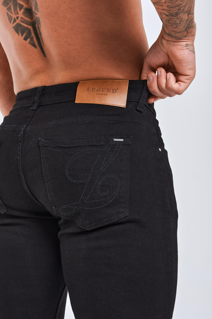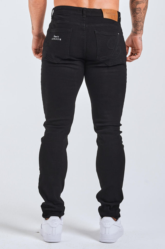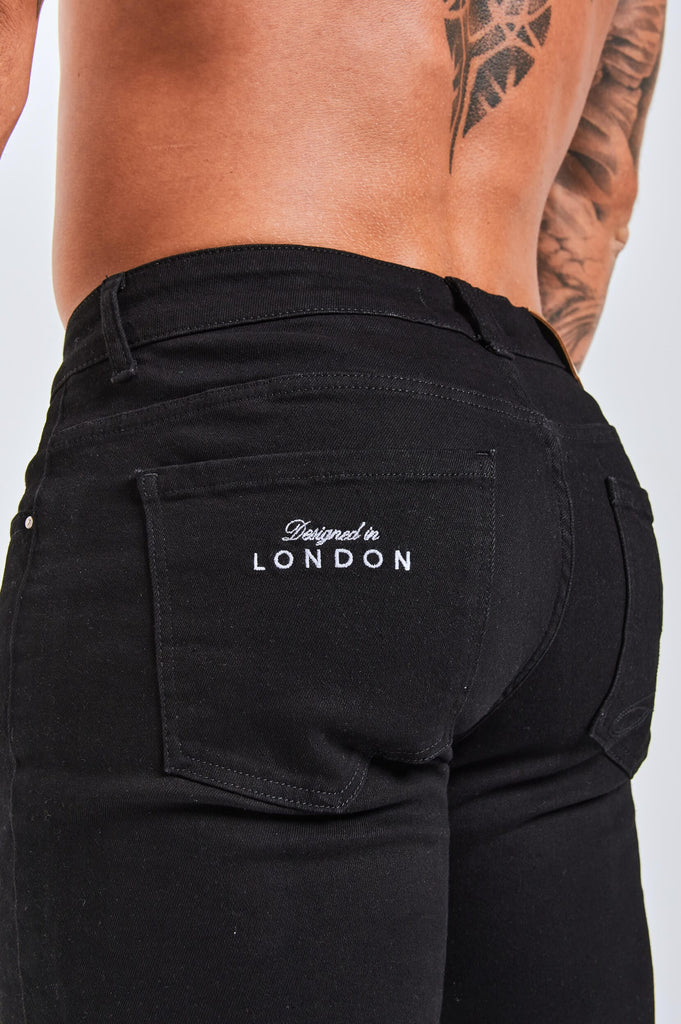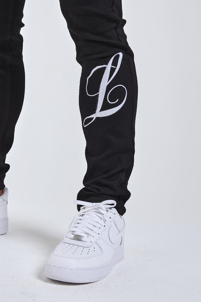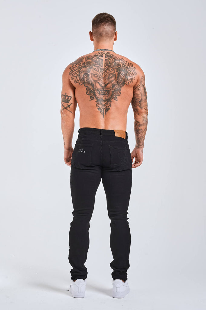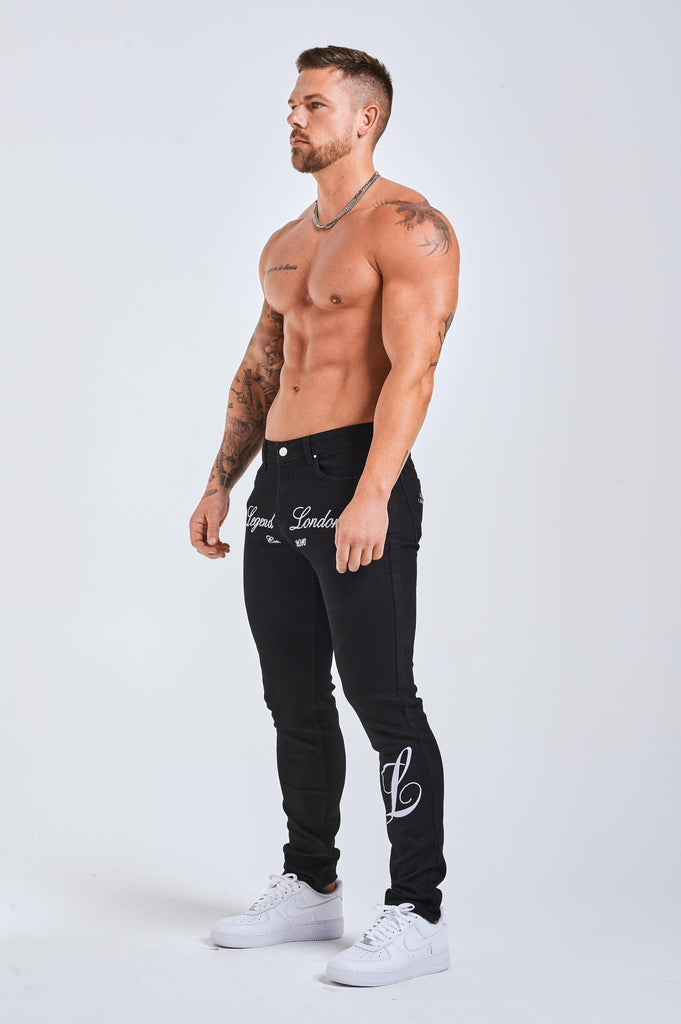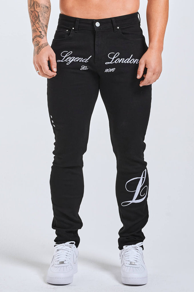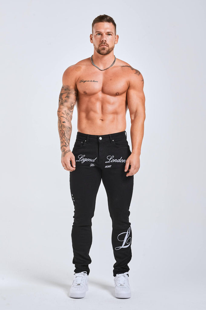 SLIM FIT JEANS 2.0 EMBROIDERED PRINTED DENIM - BLACK