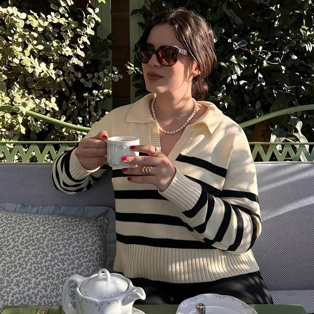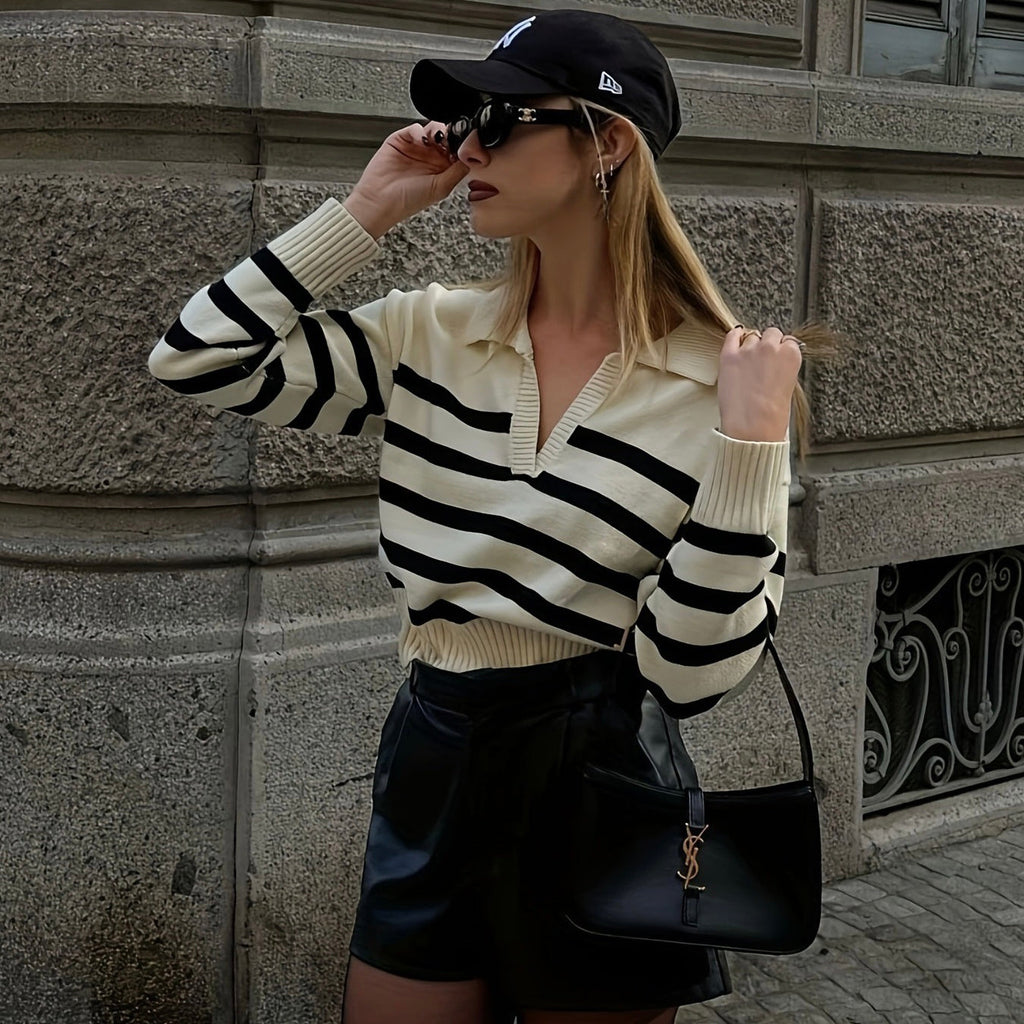 Eleva il tuo look con il nostro Polo a V in Maglia, dove le righe classiche incontrano l'eleganza senza sforzo. Realizzato per il comfort, questo polo esalta la tua silhouette e aumenta la tua fiducia. Che tu lo indossi con pantaloni su misura o con i tuoi jeans preferiti, irradierai sofisticatezza e ti sentirai chic in qualsiasi occasione. Eleva il tuo guardaroba e abbraccia lo stile senza tempo che ti definisce.