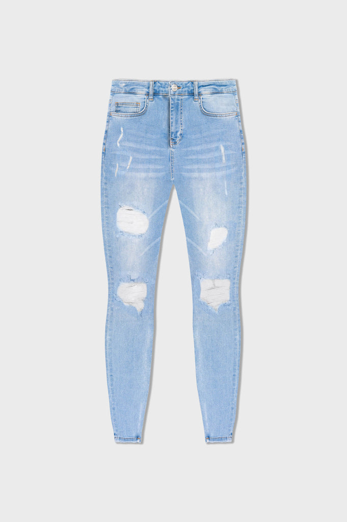 JEANS SKINNY FIT STRAPPATI E RIPARATI - BLU CHIARO