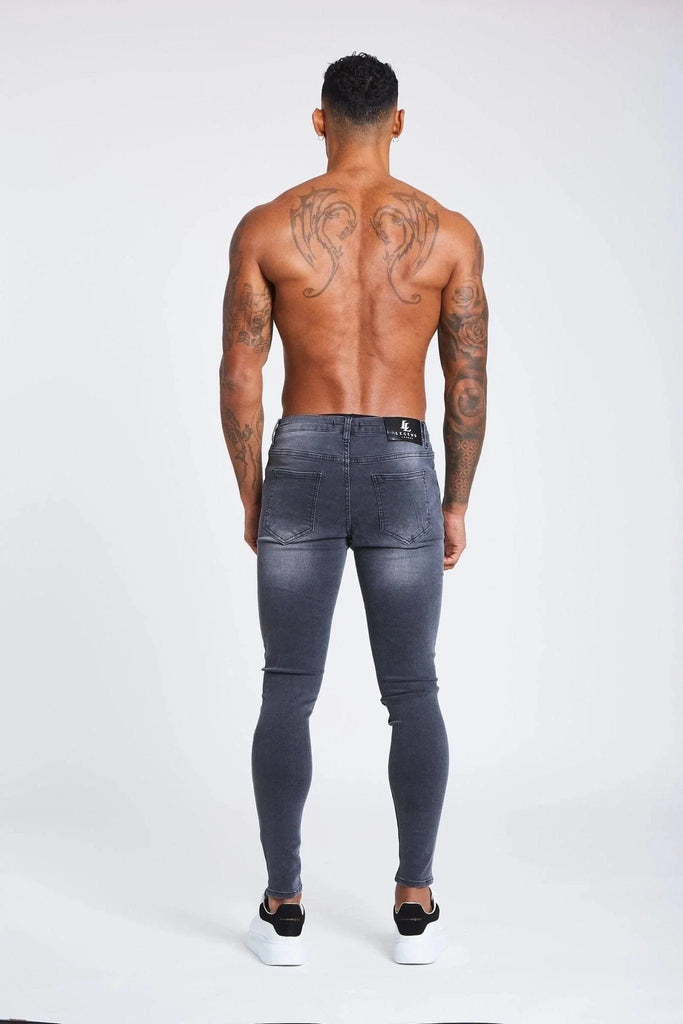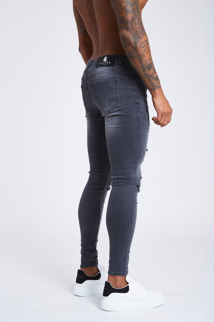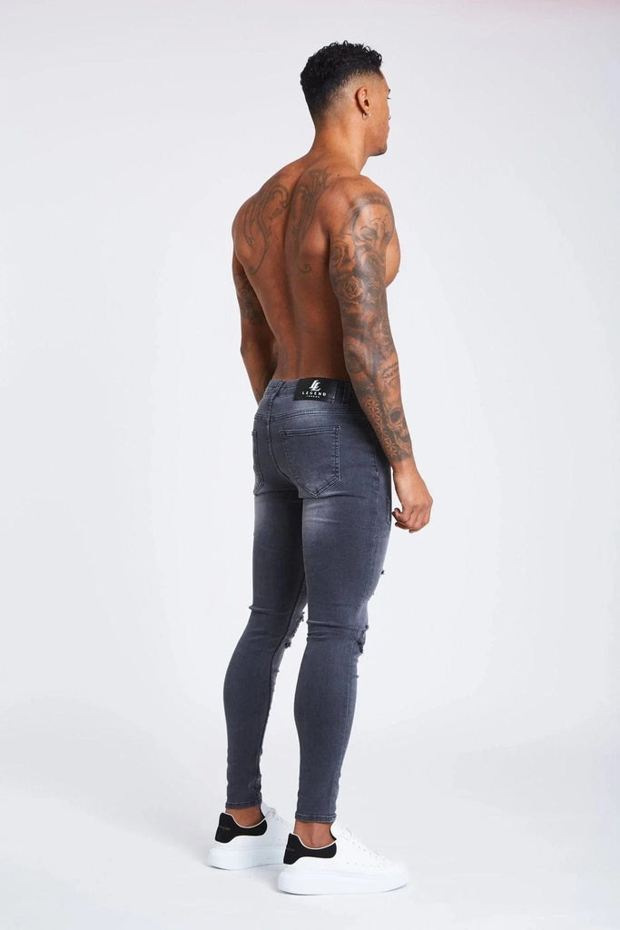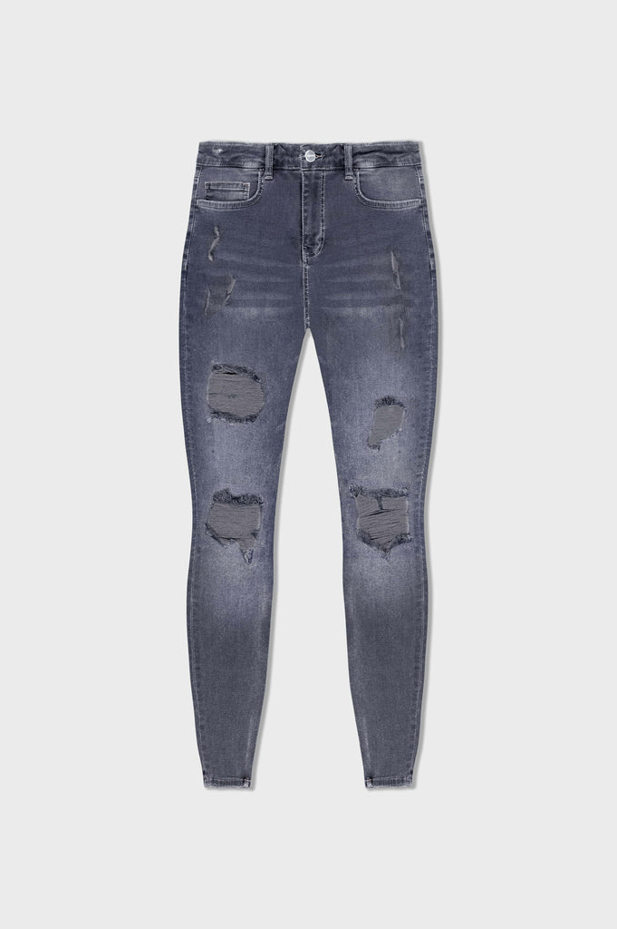 SKINNY FIT JEANS RIPPED & REPAIRED - LIGHT GREY