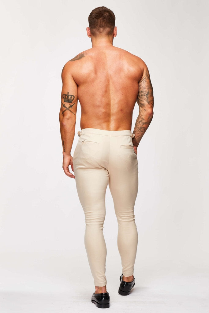 PLAIN STRETCH TROUSER W/ SIDE CINCH - BEIGE