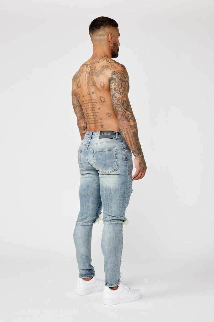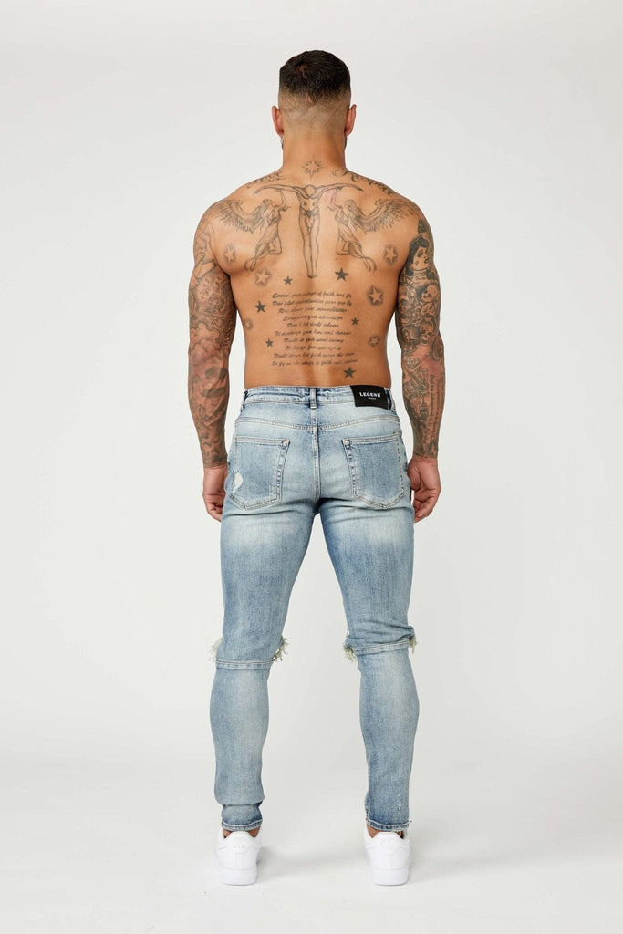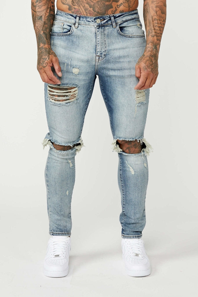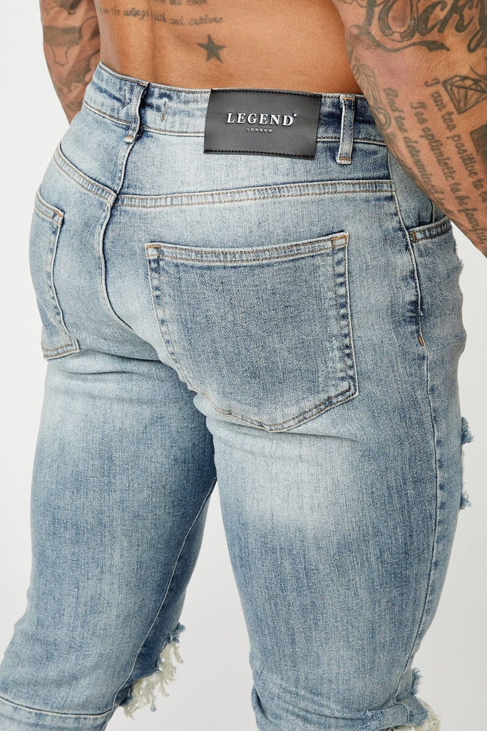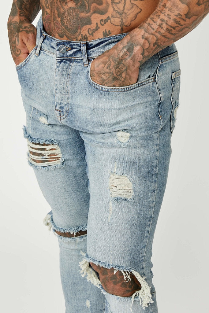 SKINNY FIT JEANS - MID BLUE RIPPED & REPAIRED