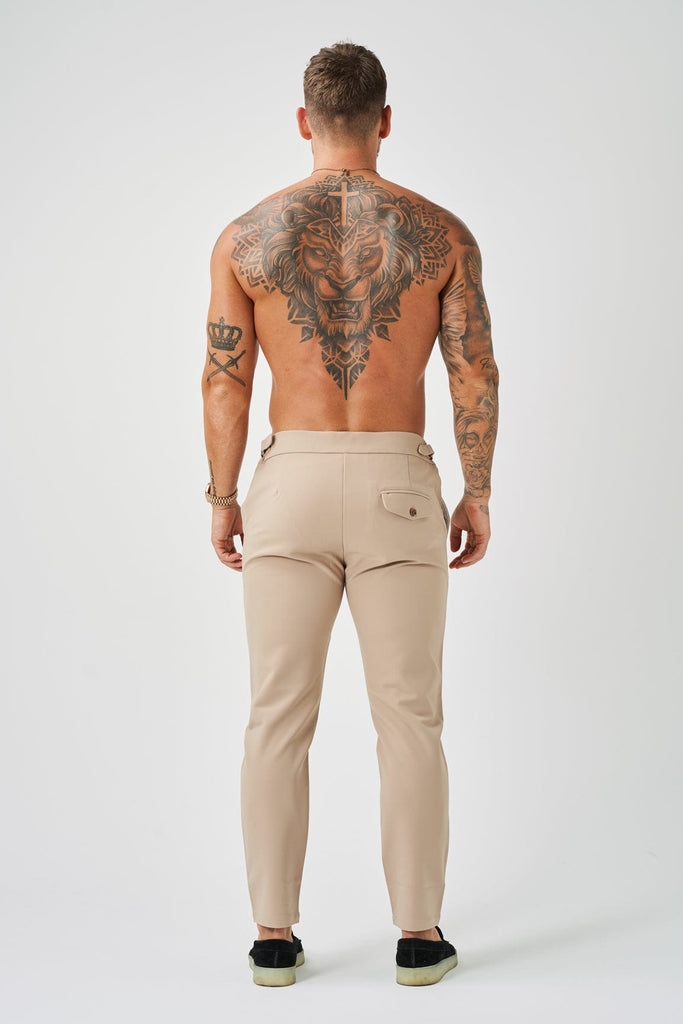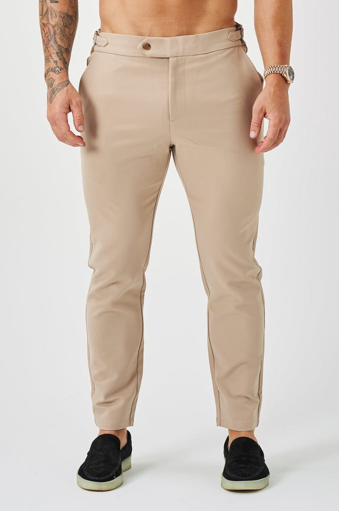 PANTALONE SLIM FIT IN TESSUTO ELASTICO CON CORDINO LATERALE - BEIGE