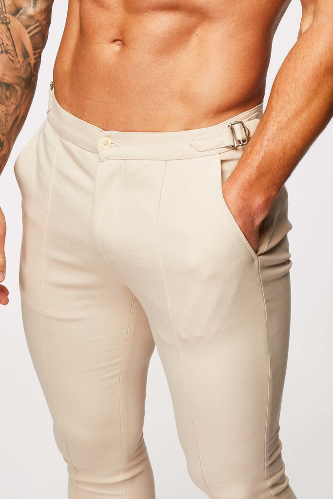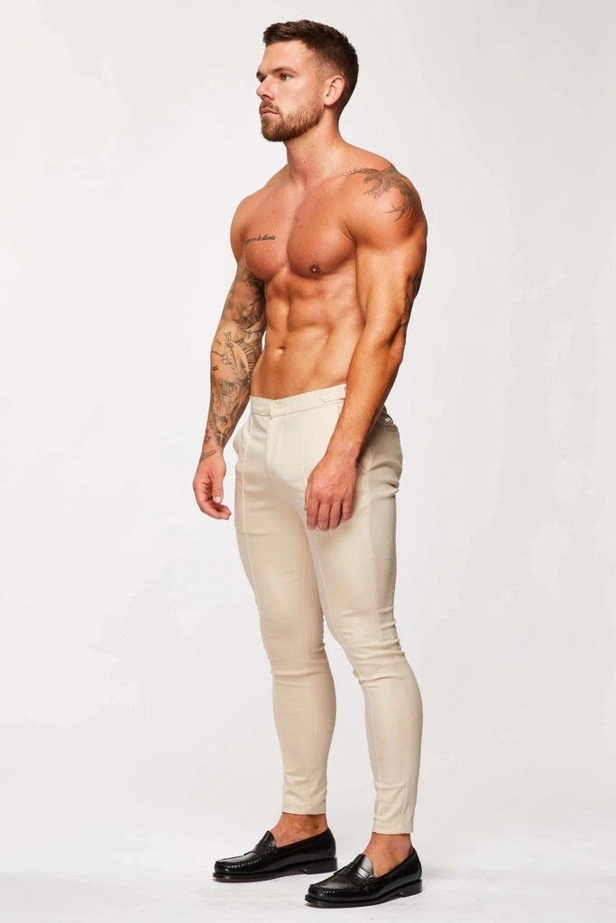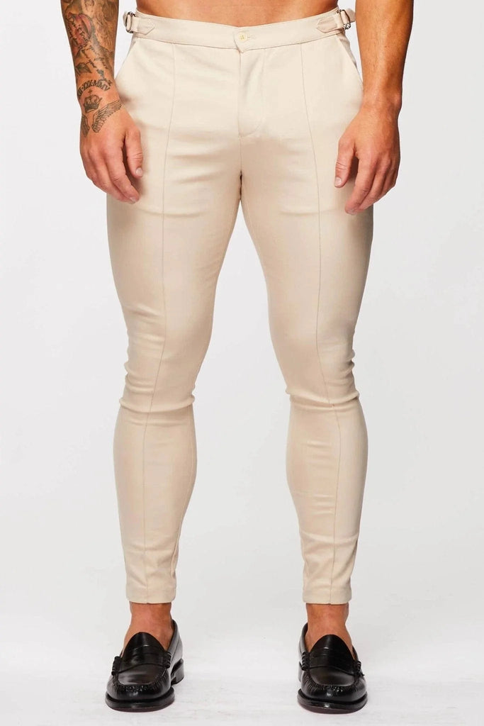 PANTALONE STRETCH LISCIO CON CORDINO LATERALE - BEIGE