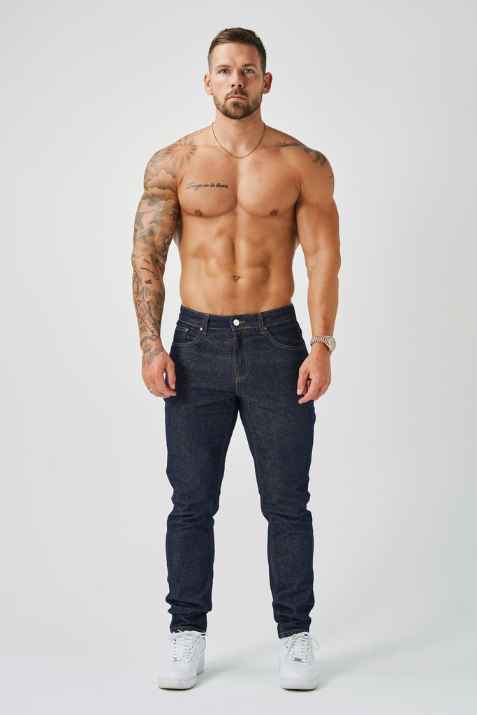 Our Regular Fit Jeans have less stretch than our Slim 2.0 and Skinny Fit Jeans. If you are in between sizes or prefer a looser fit then we advise to size up