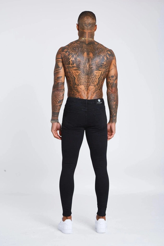 SKINNY FIT JEANS RIPPED & REPAIRED - BLACK