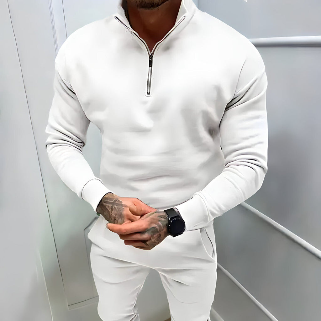 Il Maglione Mezza Zip Dolci Lusso racchiude l'equilibrio tra sofisticazione funzionale e stile contemporaneo. Realizzato con tessuti selezionati e di origine etica, questo pezzo offre un calore morbido ideale per i mesi più freschi. Il suo design raffinato presenta una elegante mezza zip che aggiunge un tocco di modernità, permettendo uno styling versatile adatto a qualsiasi occasione.