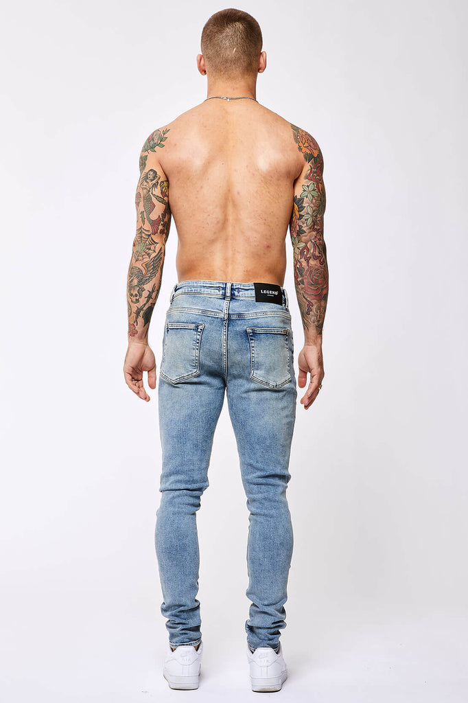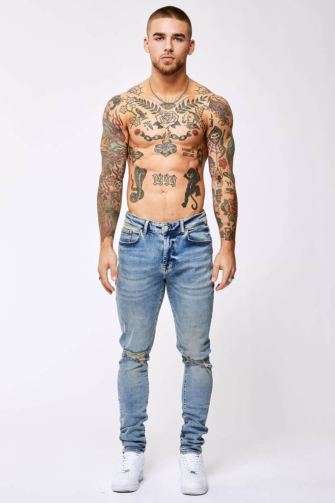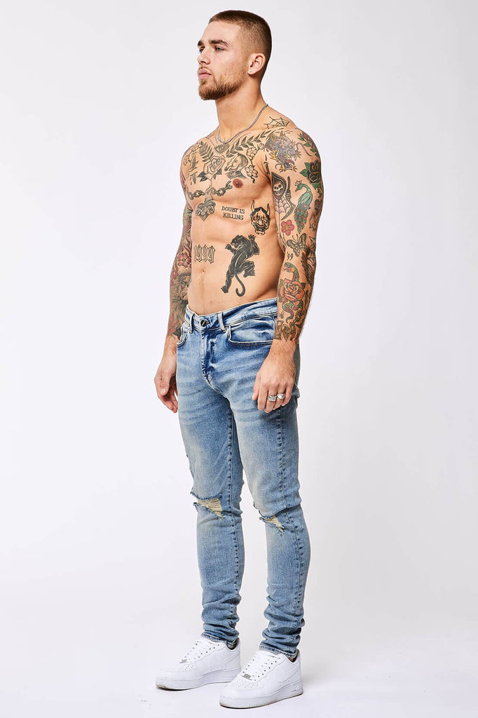 SKINNY FIT JEANS - VINTAGE BLUE RIPPED KNEE
