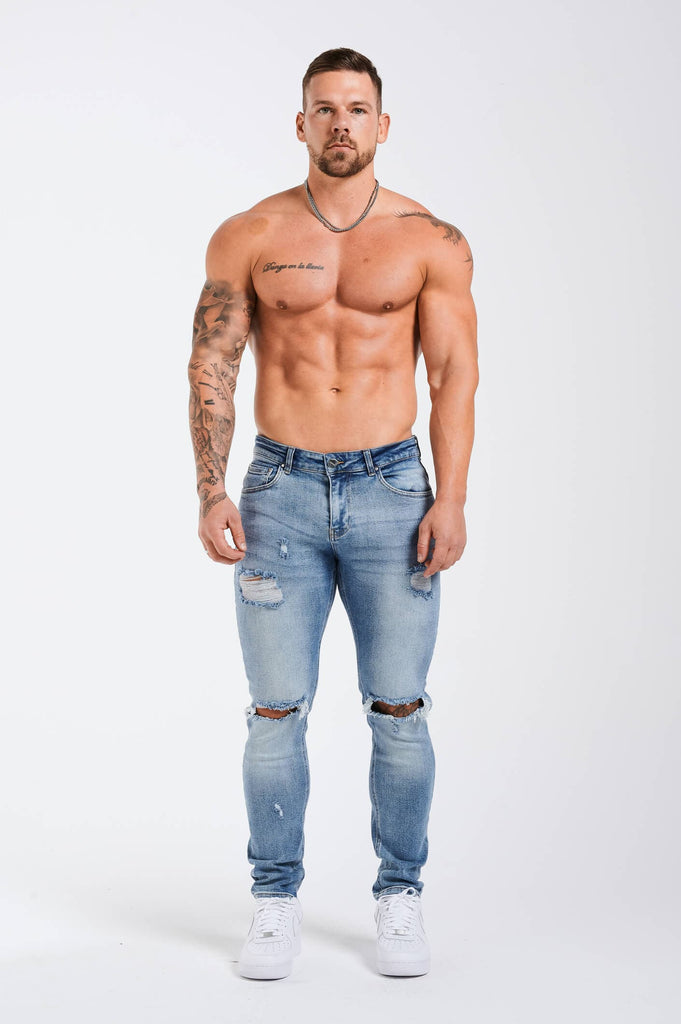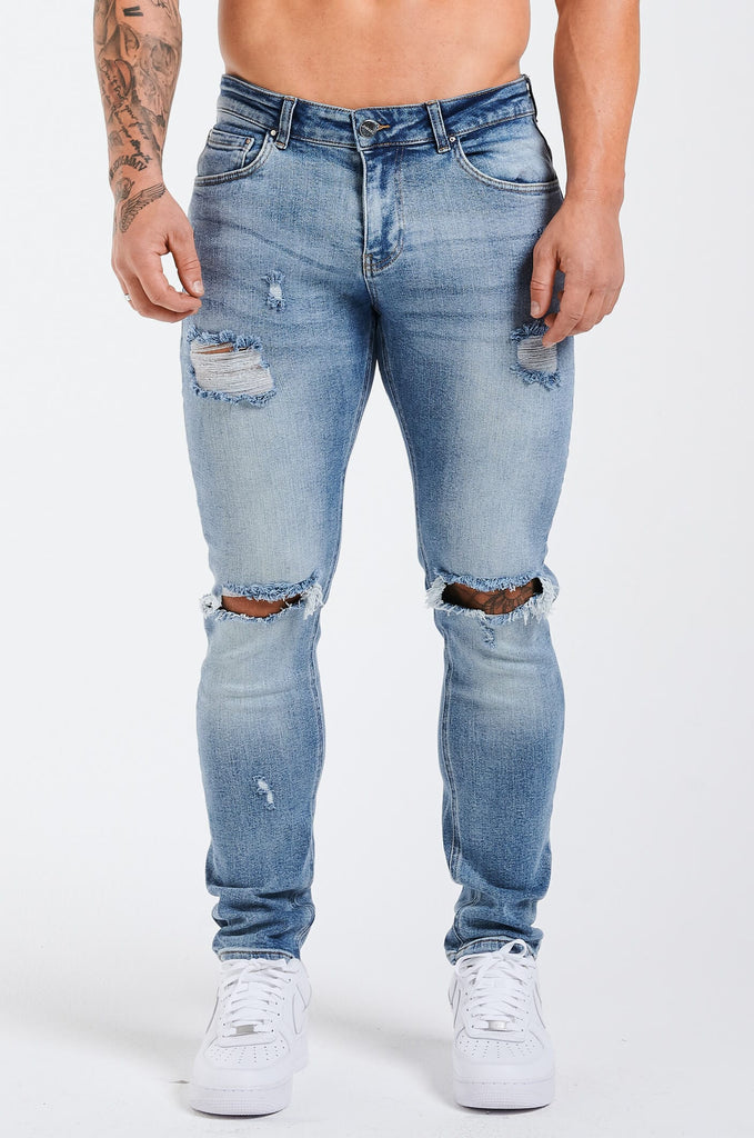 SLIM FIT JEANS 2.0 RIPPED AND REPAIRED - MID BLUE