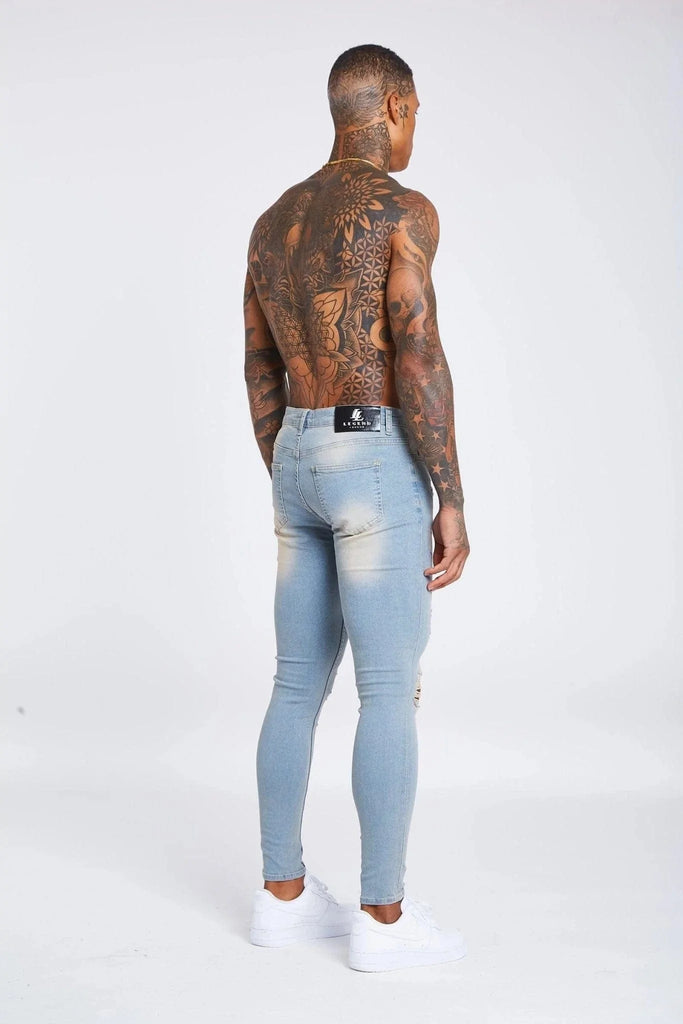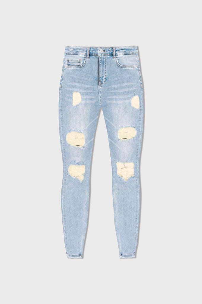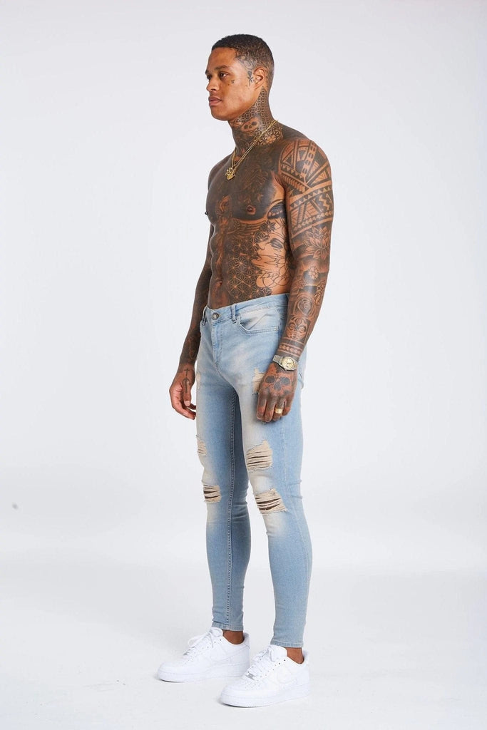 SKINNY FIT JEANS RIPPED & REPAIRED - STONE WASHED